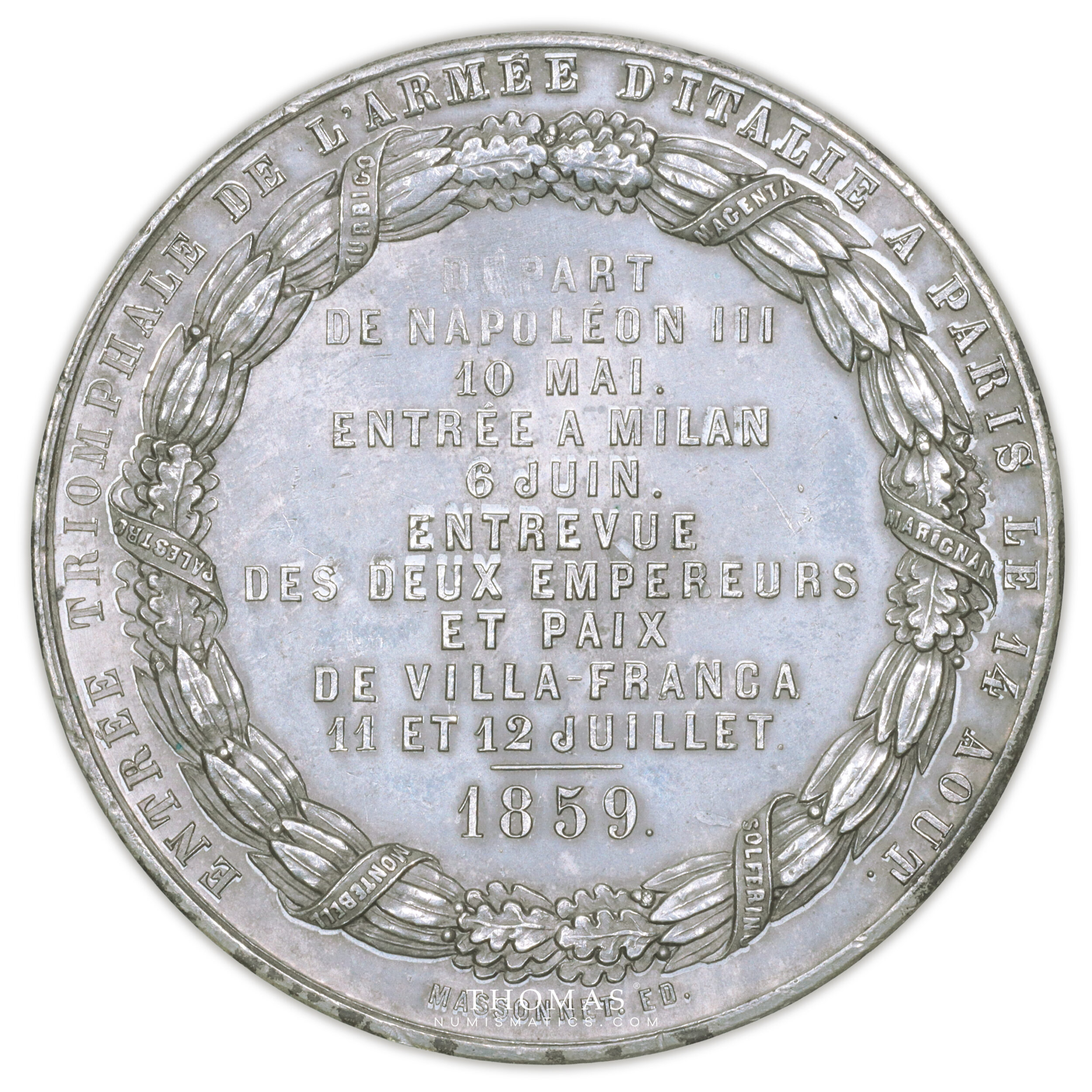 Napoléon III – Médaille étain 1859 – Entrée Armée Italie à Paris