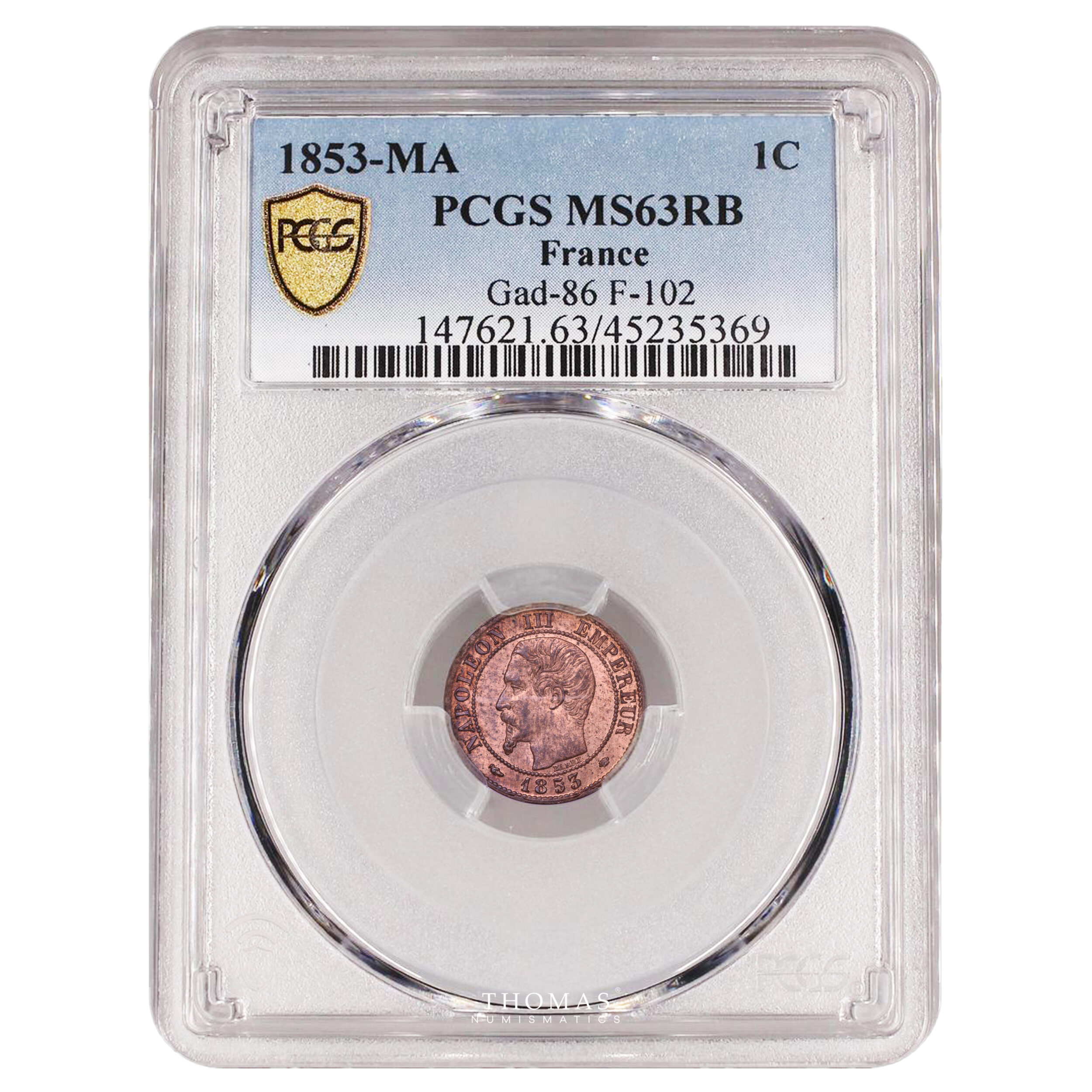 1 centime – 1853 MA Marseille – PCGS MS 63 RB
