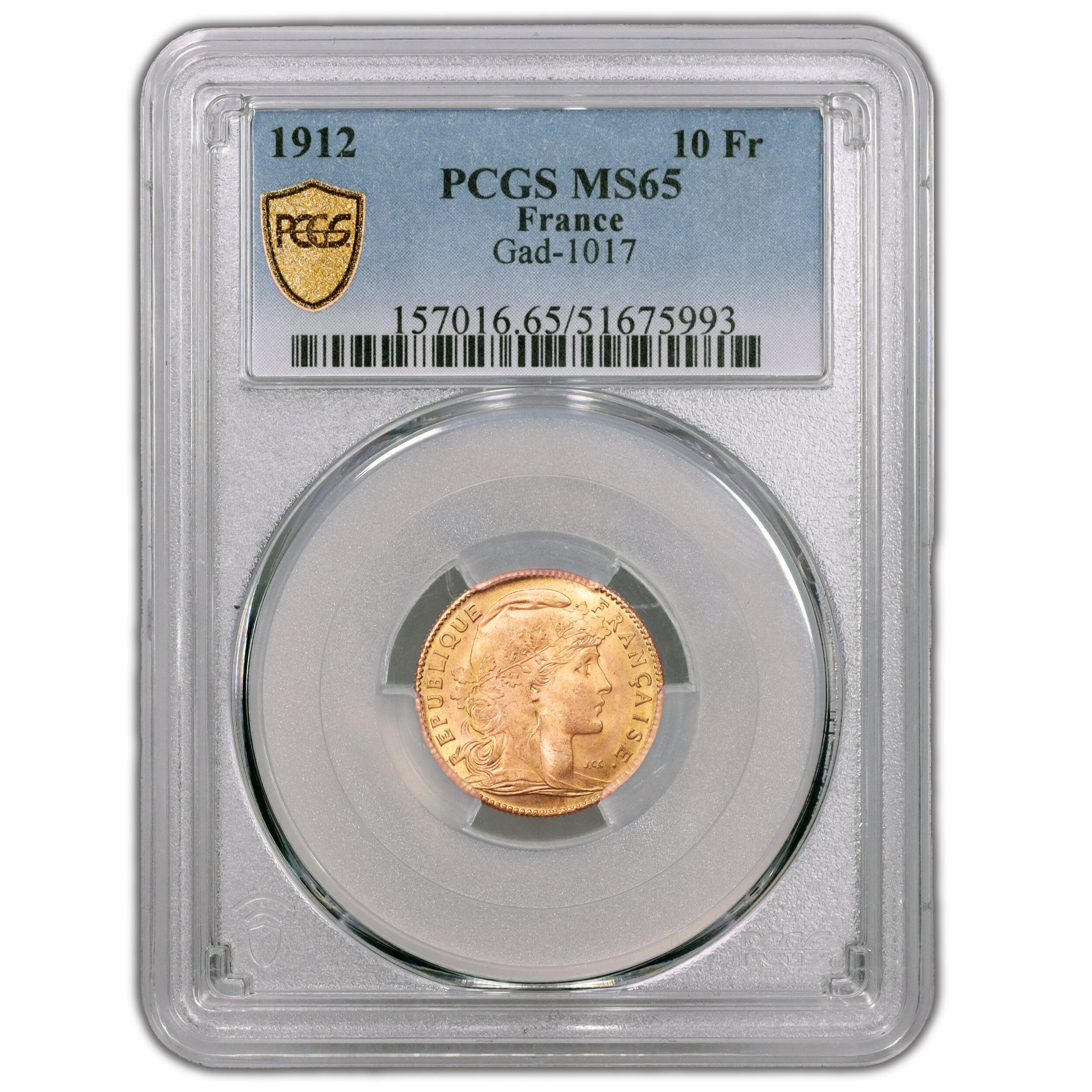 10 Francs or coq – 1912 Paris – PCGS MS 65