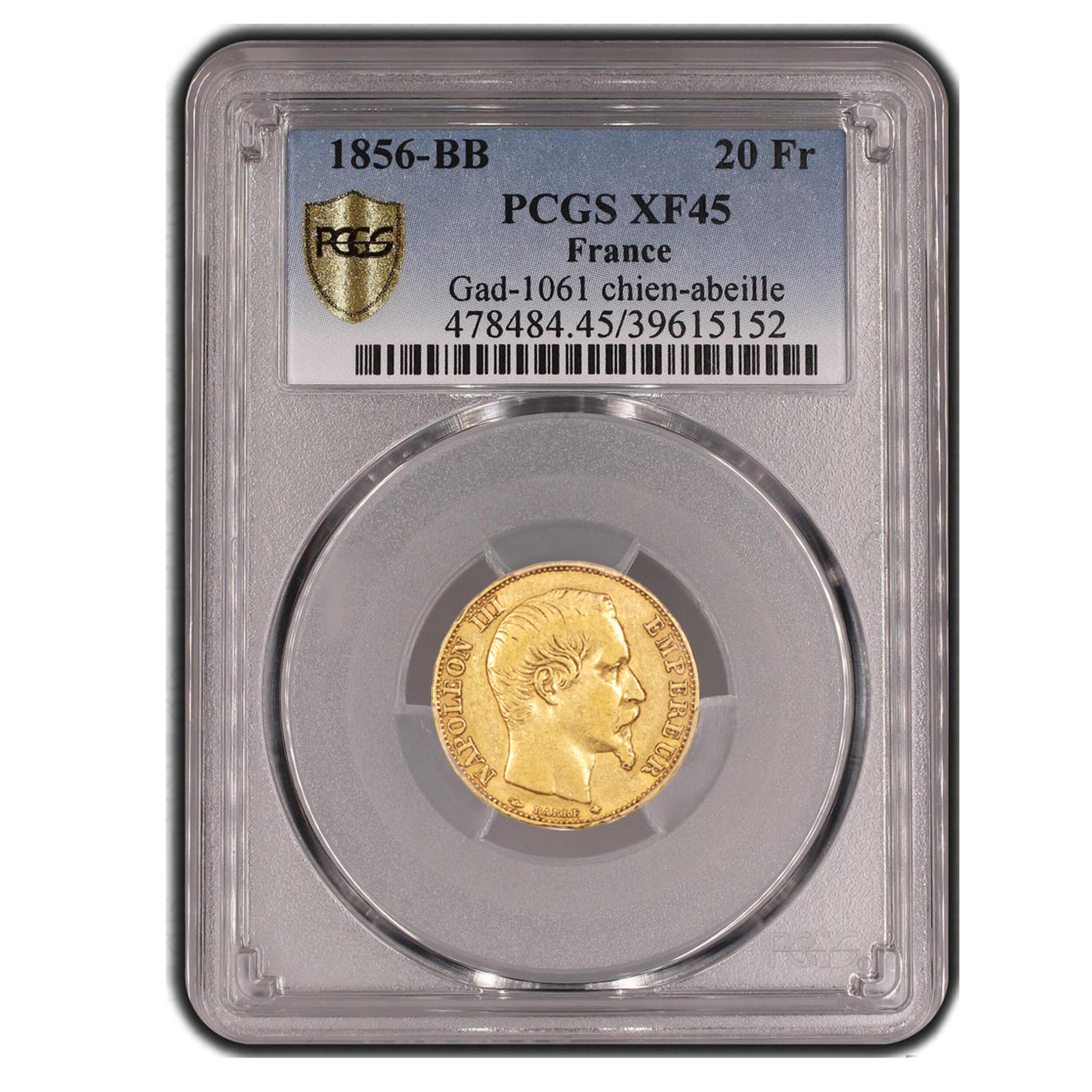 20 francs or – 1856 BB Strasbourg – Variété chien-Abeille – PCGS XF 45 – 59 115 exemplaires