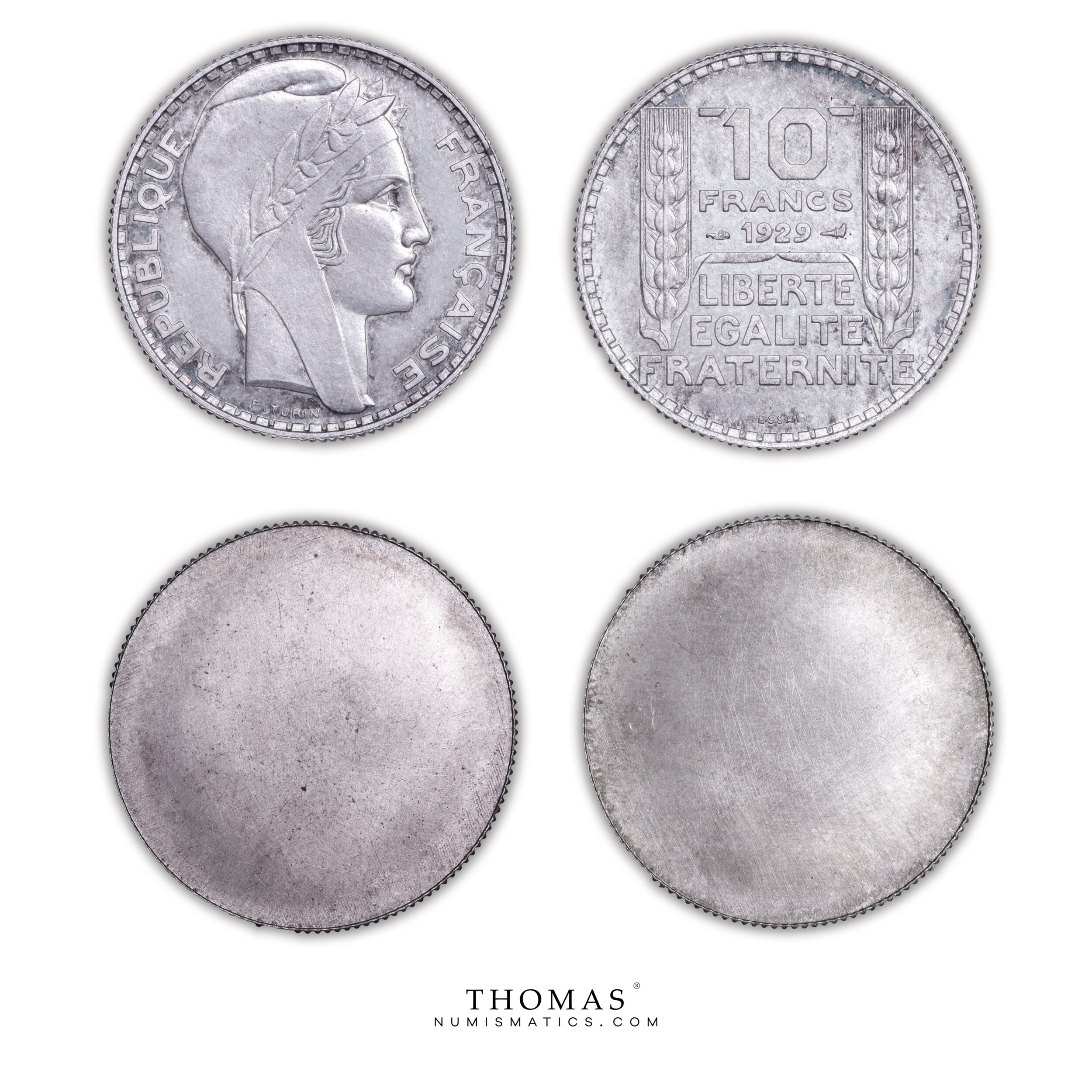 Paire d’épreuves uniface – 10 francs Turin 1929 – avers et revers – cupro-aluminium argenté