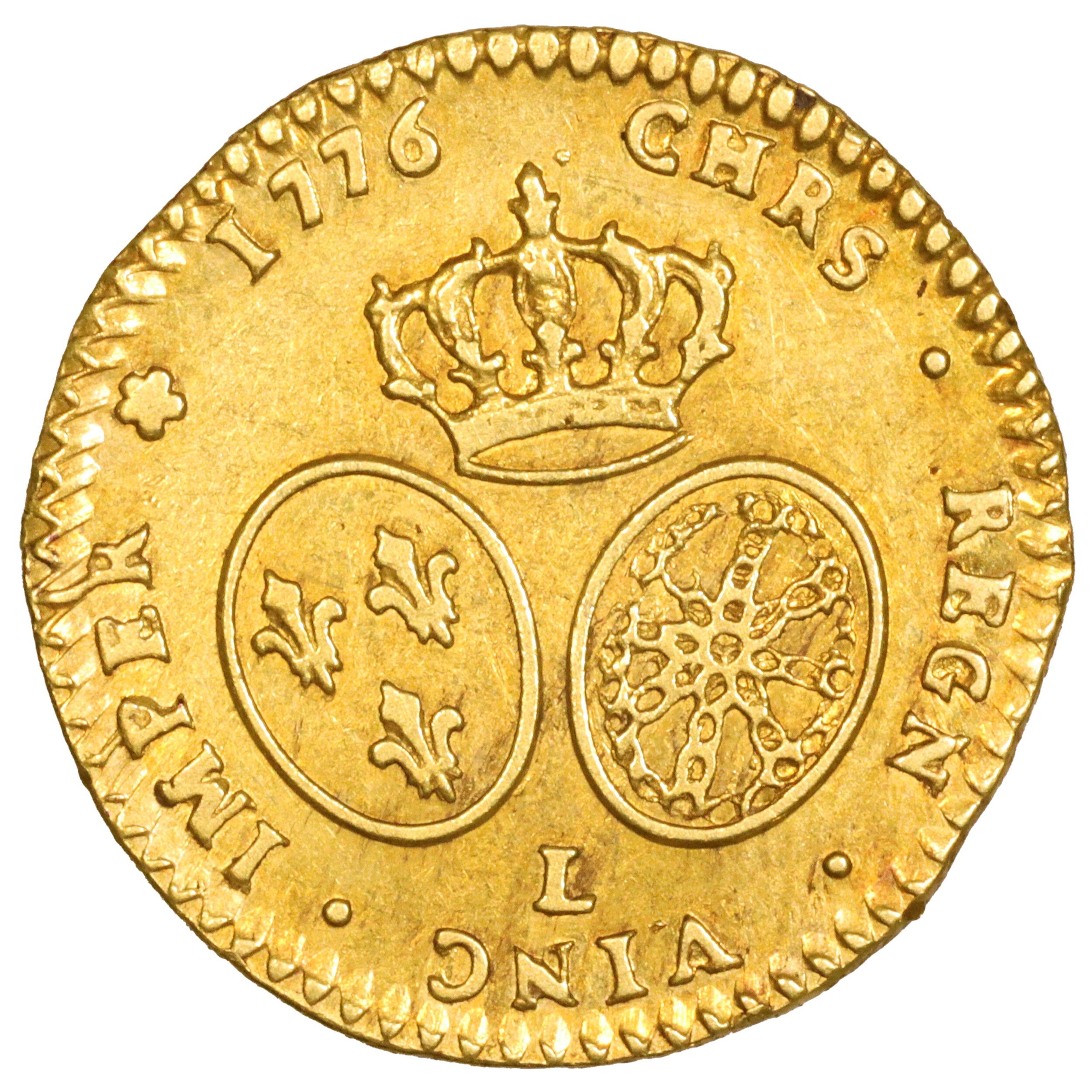 1/2 Louis d’or – au buste habillé – 1776 L Bayonne – Indice rareté R5 – 683 exemplaires