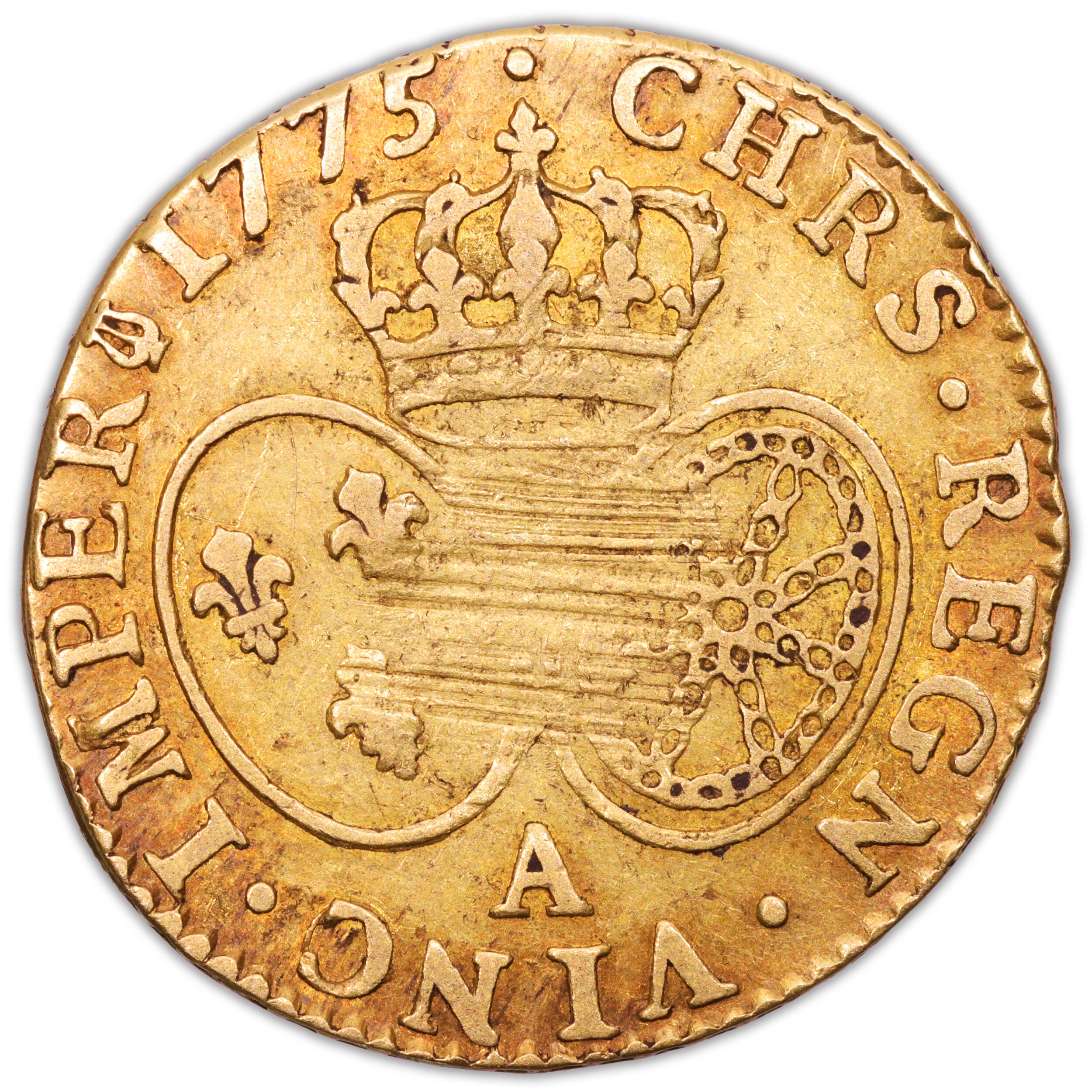 Monnaie agréable pour ce type avec une usure régulière. Monnaie ayant été rognée avec quelques marques anciennes sur la tranche pour reproduire un effet fleuronné d'origine. Au revers présence de stries d'ajustage. Patine légèrement dorée dans les légendes.