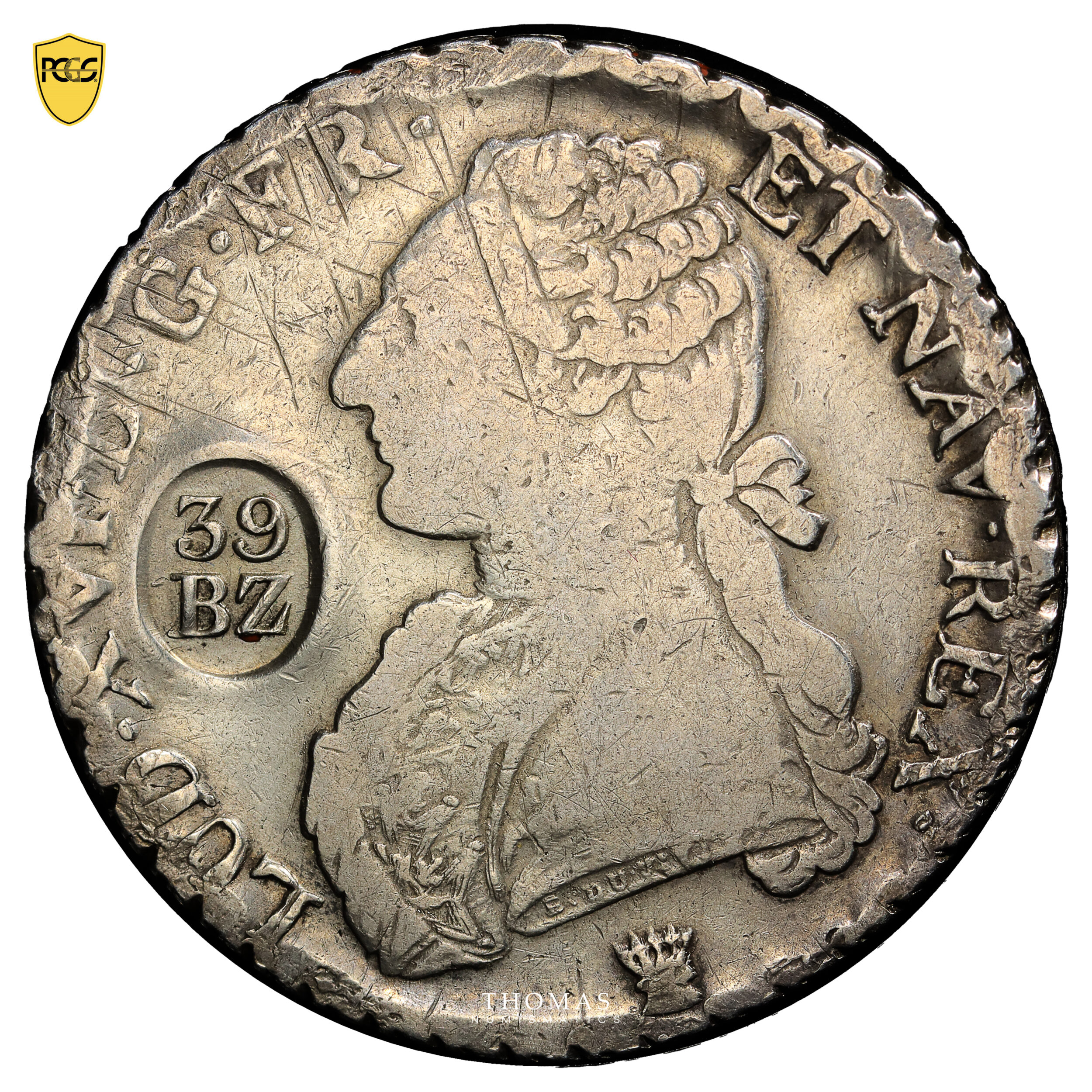 Monnaie ayant circulé avec une contremarque de 39 BZ nette et précise très bien venue à la frappe.