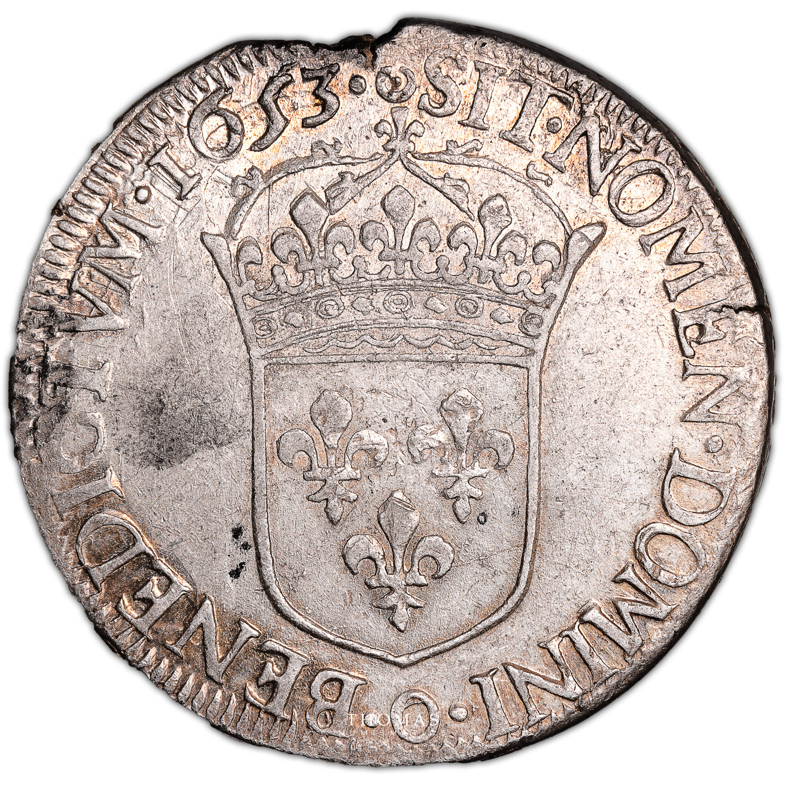 Écu à la mèche longue – 1653 O Riom – Trésor de Montrichard – 4085 exemplaires