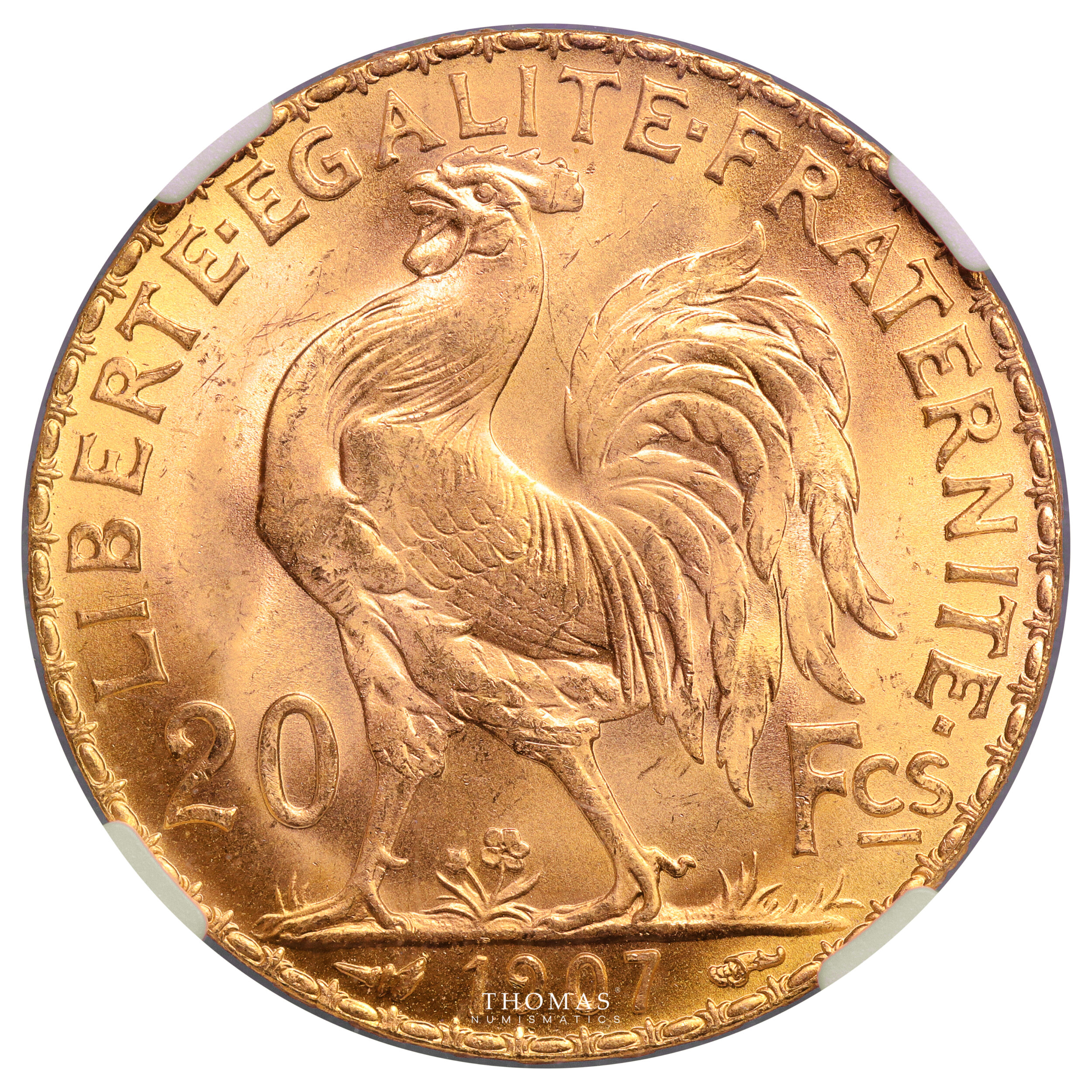 Gold – 20 francs or – 1907 Paris – NGC MS 67