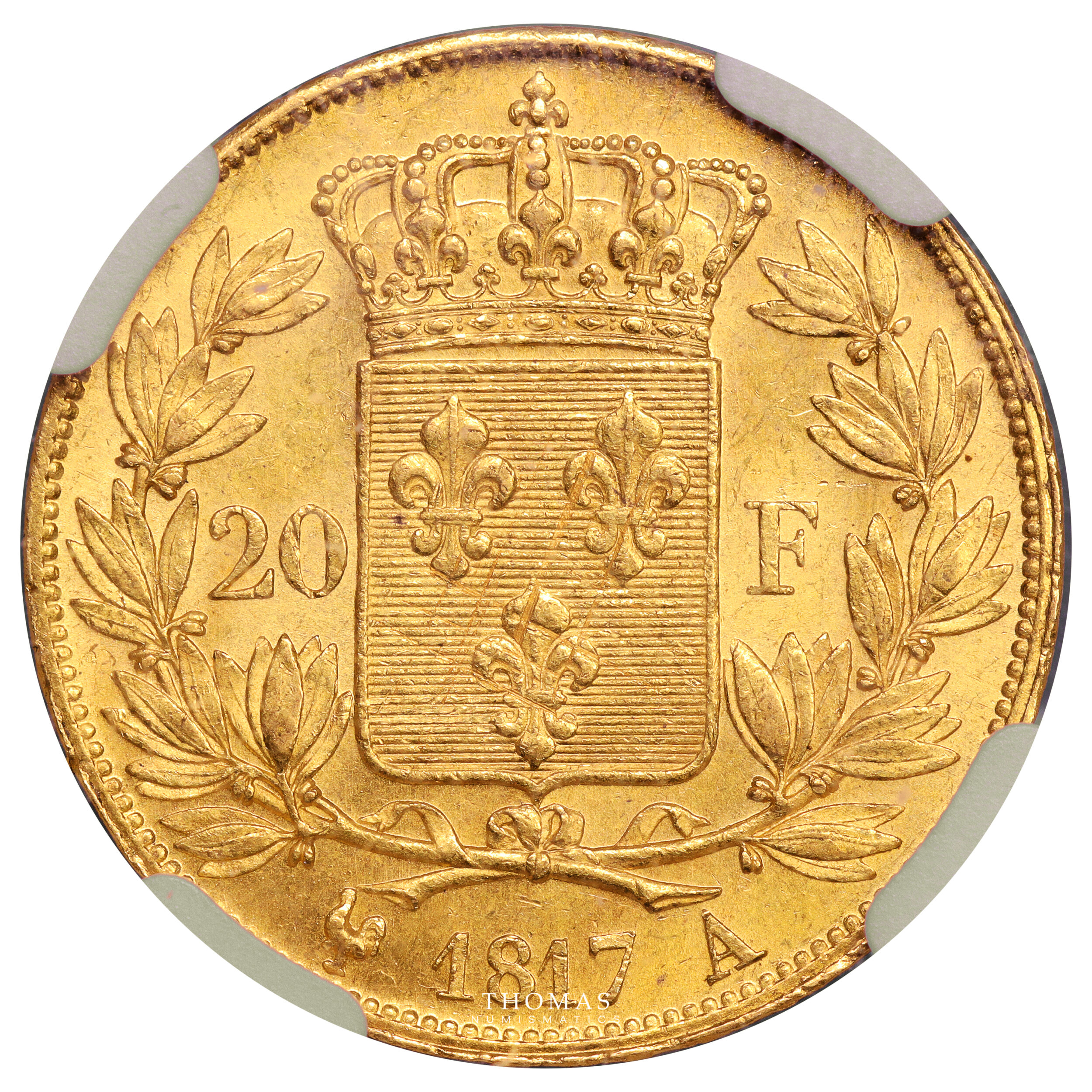Gold – 20 Francs Or – 1817 A Paris – NGC MS 62+