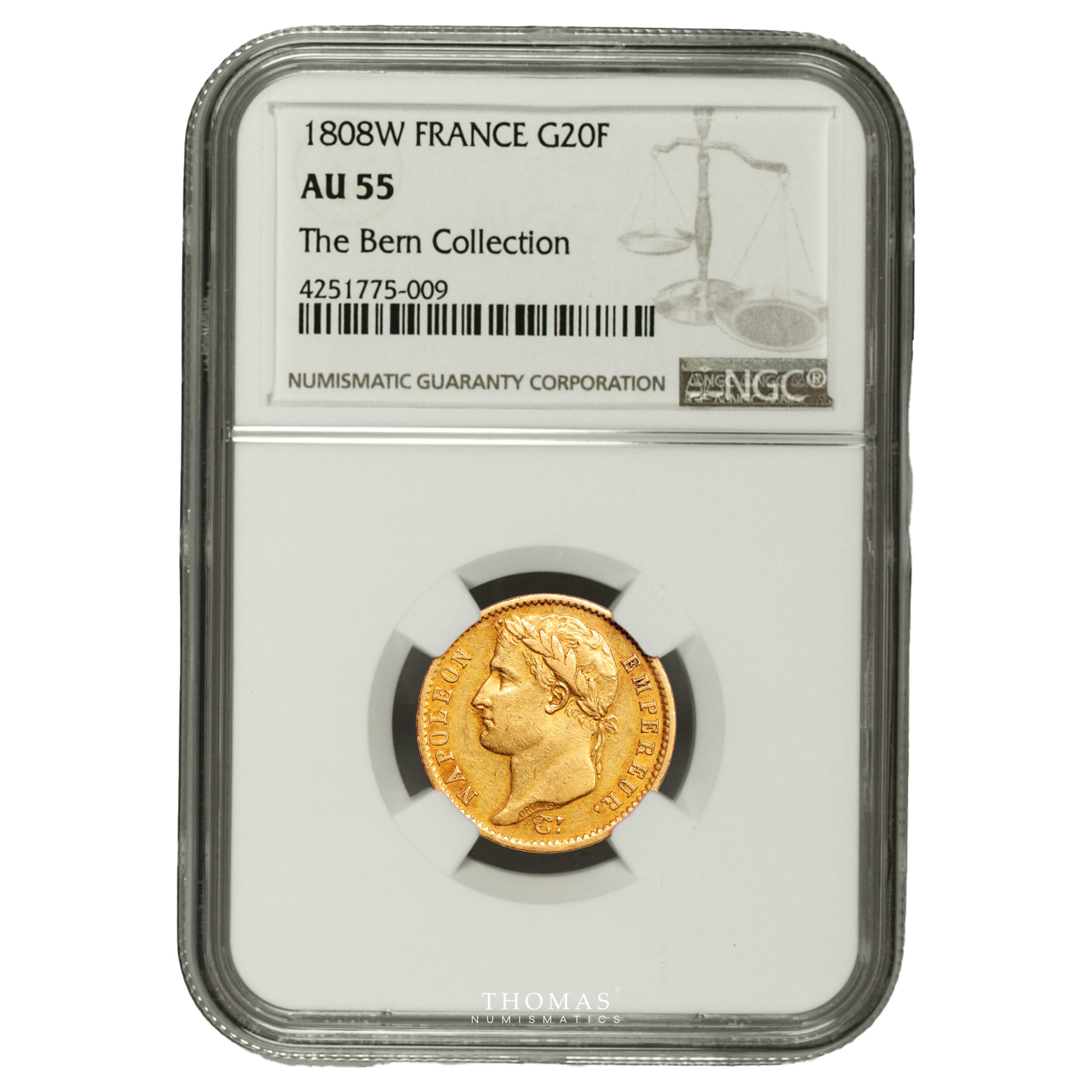 Gold – 20 Francs Or – 1808 W Lille – NGC AU 55 – 8465 examples
