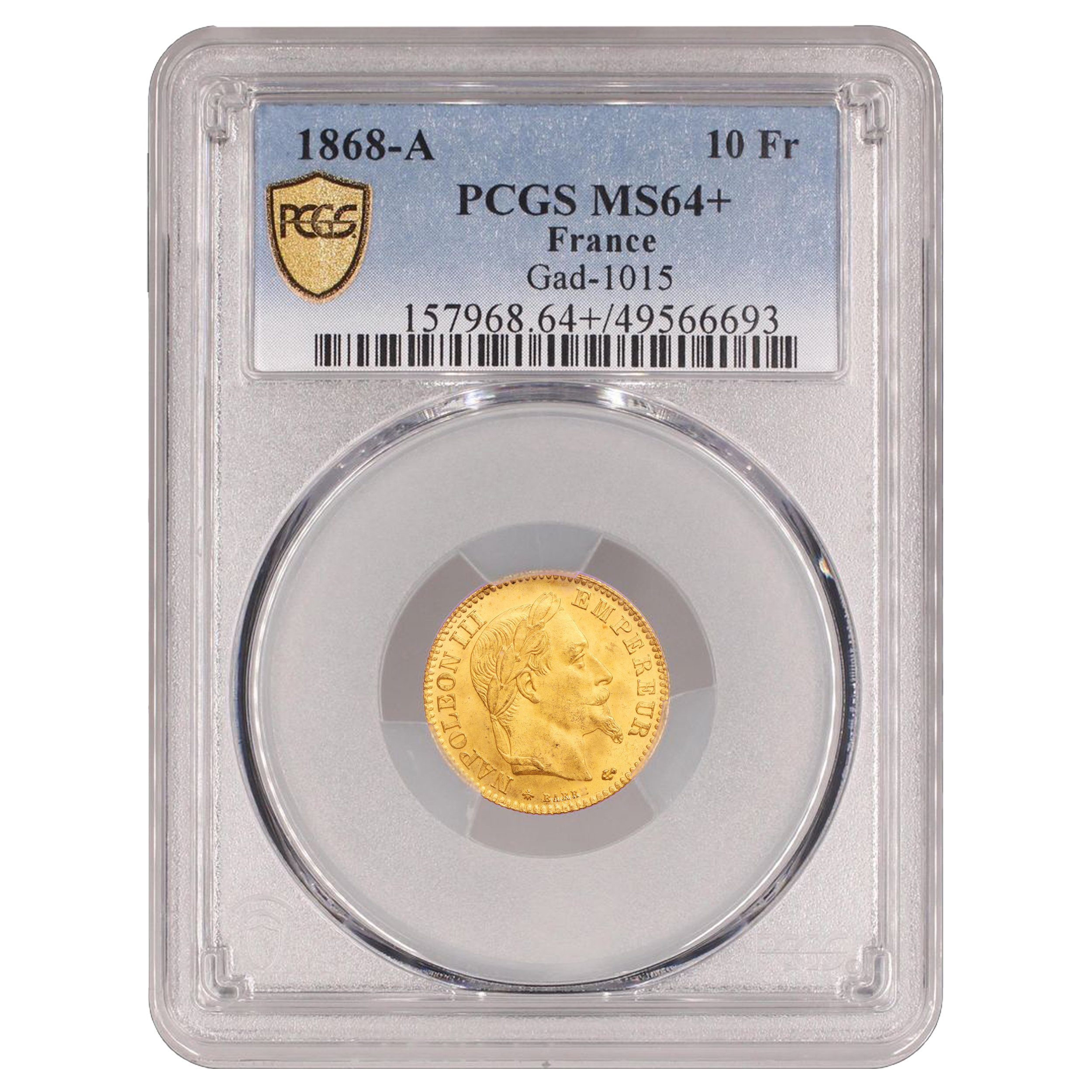 Gold – 10 Francs Or – 1868 A Paris – PCGS MS 64+