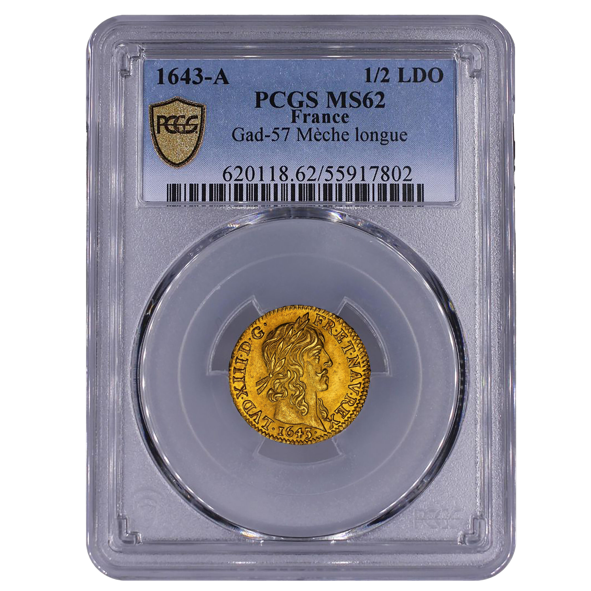 Gold – 1/2 Louis or – à la mèche longue – 1643 A Paris – PCGS MS 62