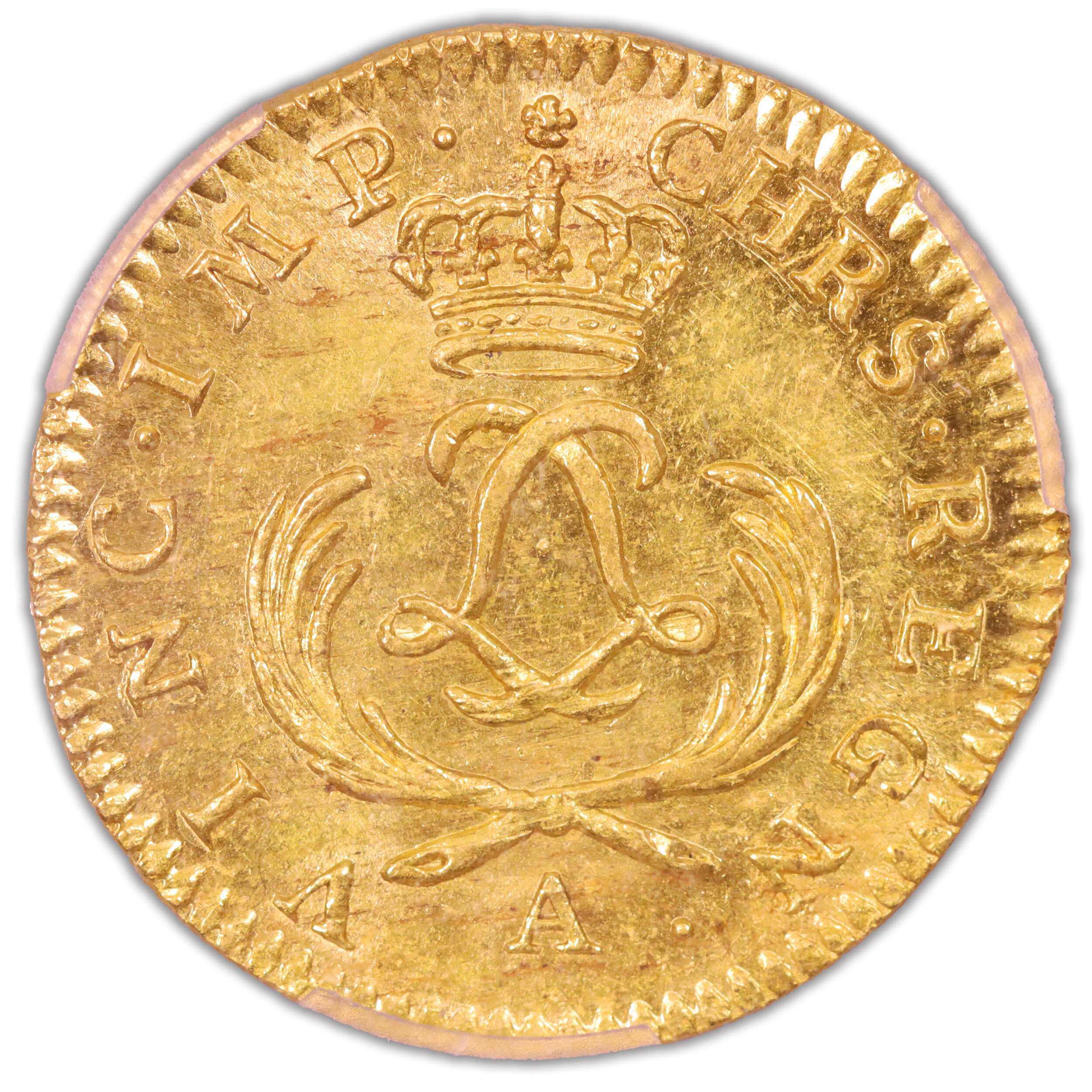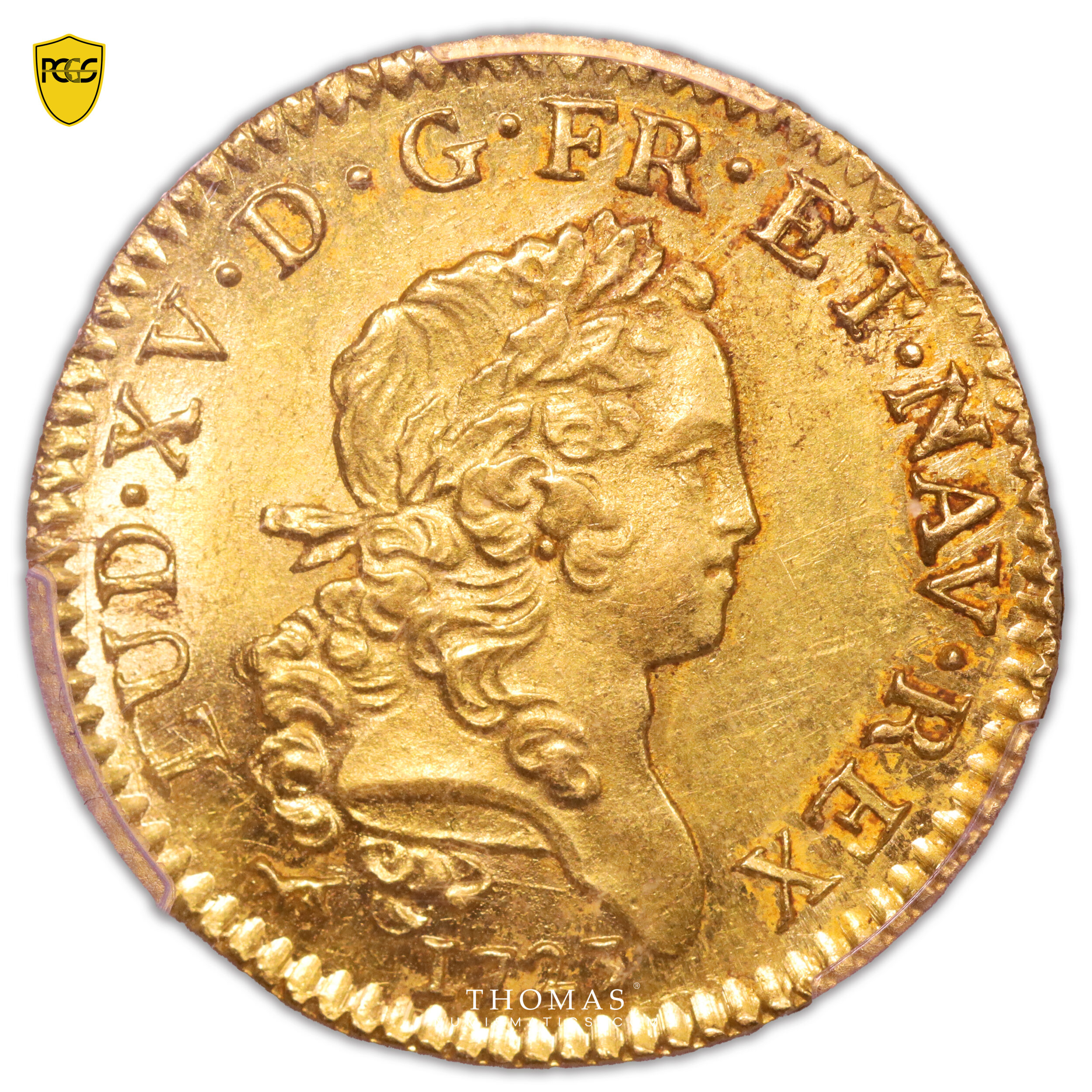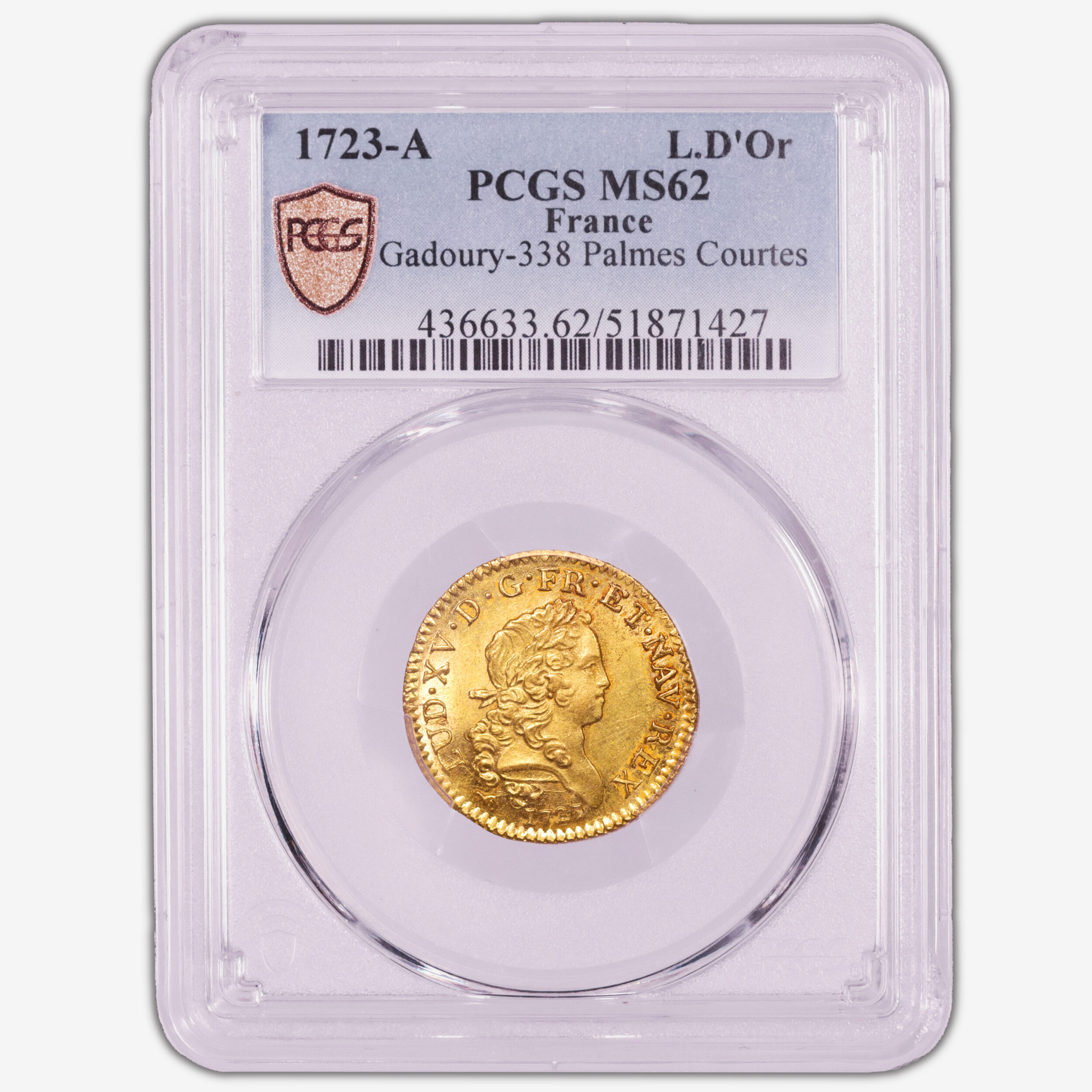 Gold – Louis d’or au Mirliton – Palmes courtes – 1723 A Paris – PCGS MS 62