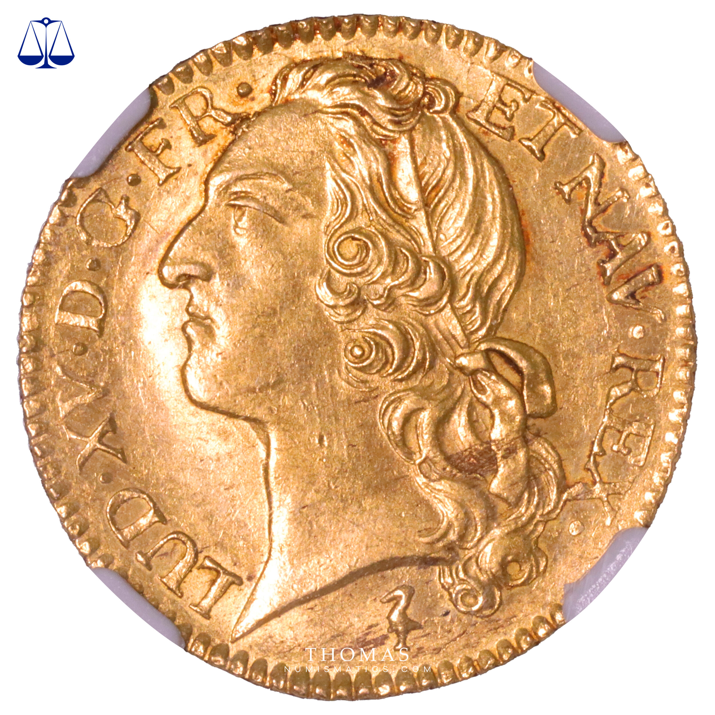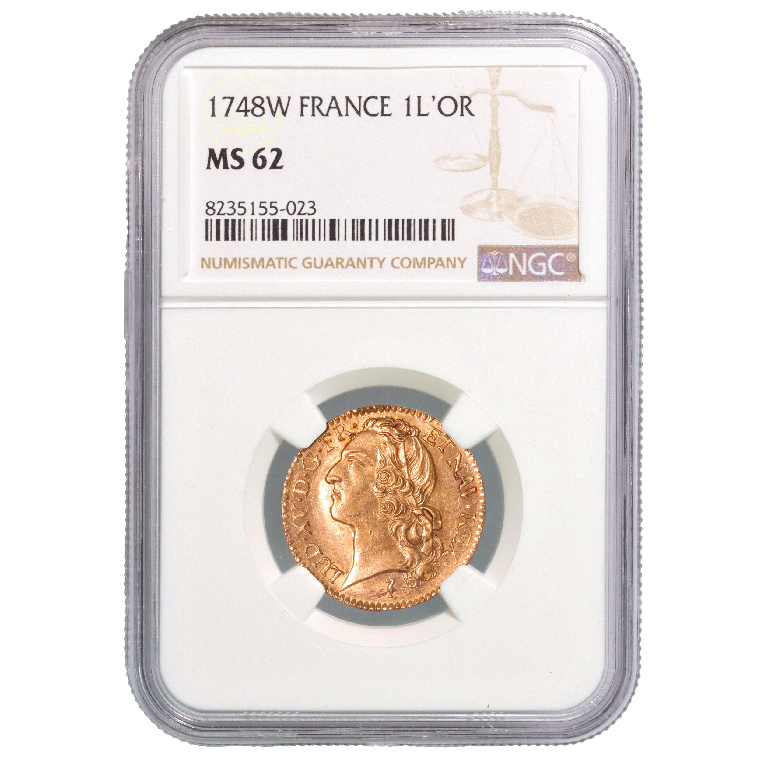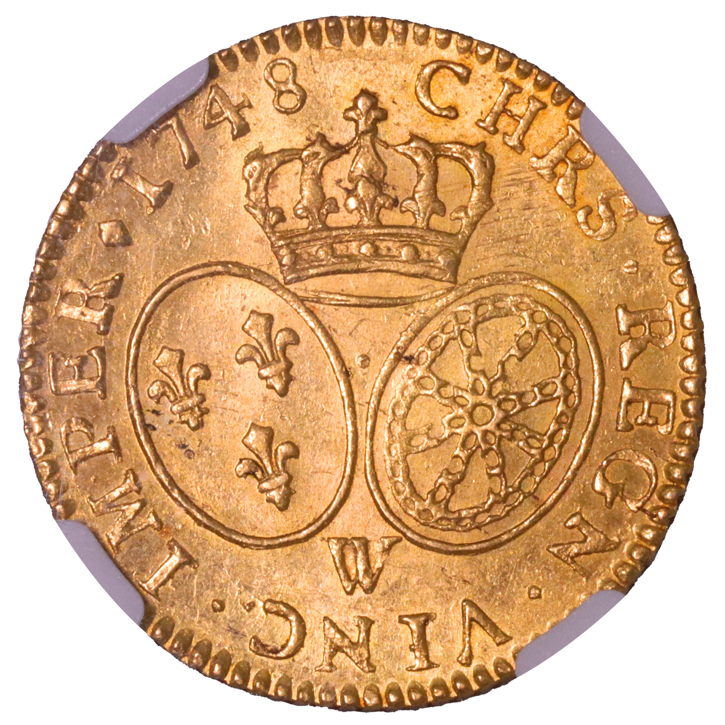 Gold – Louis d’or au bandeau – 1748 W Lille – NGC MS 62