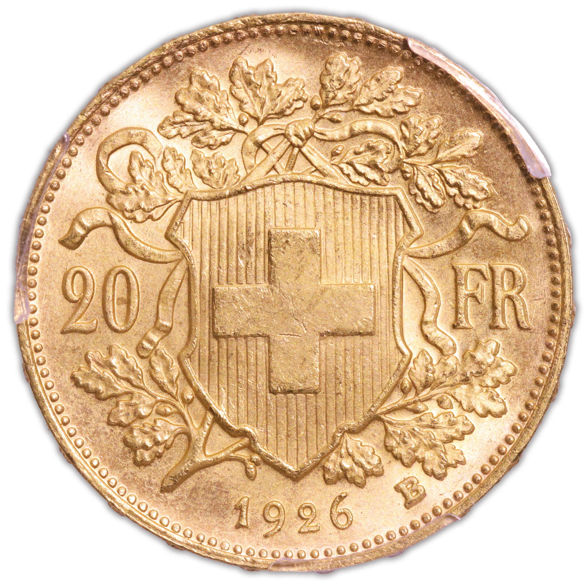 Gold – 20 francs or Vreneli – 1926 B Bern – PCGS MS 65