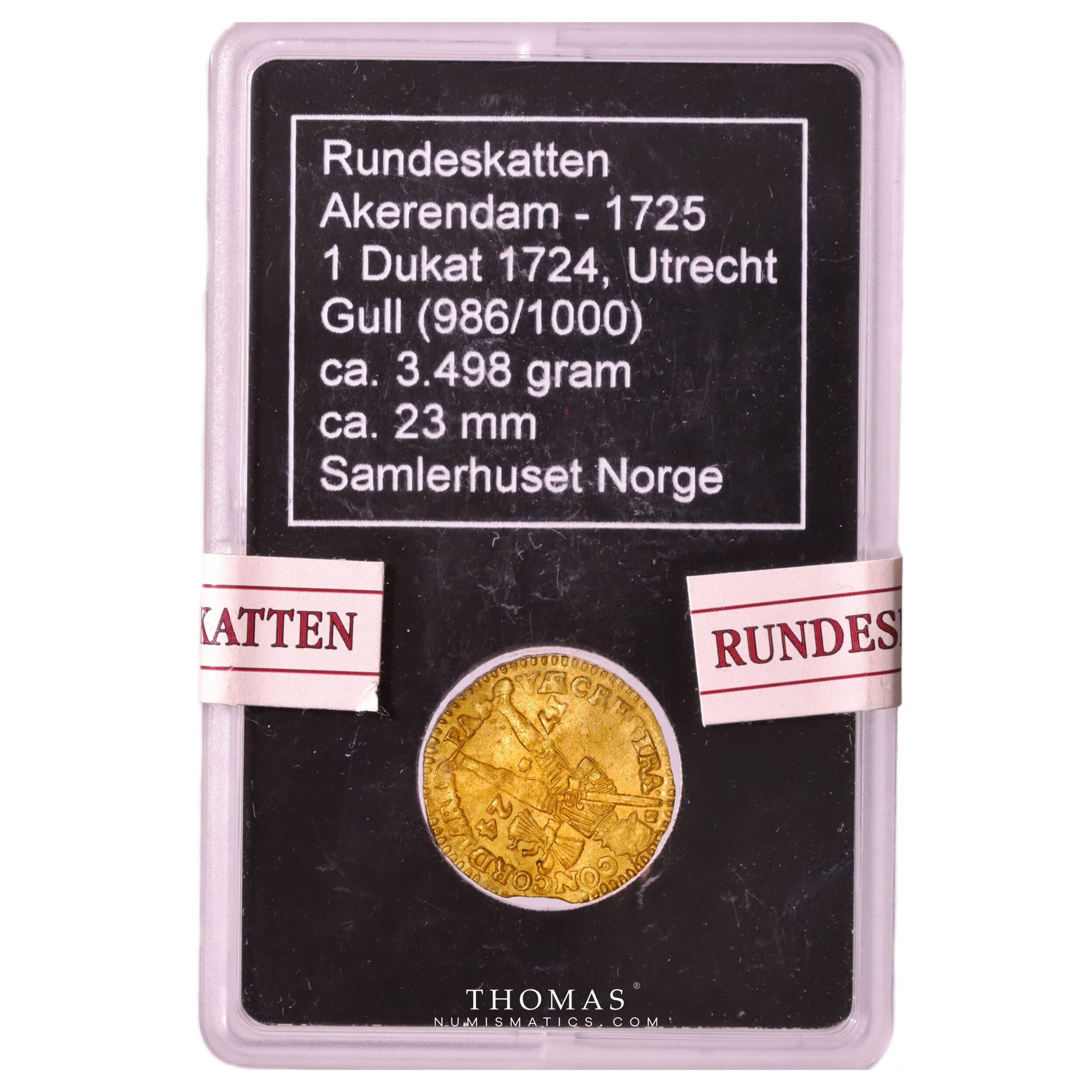 Gold Ducat – 1724 Utrecht – original case – Treasure shipwreck – Akerendam