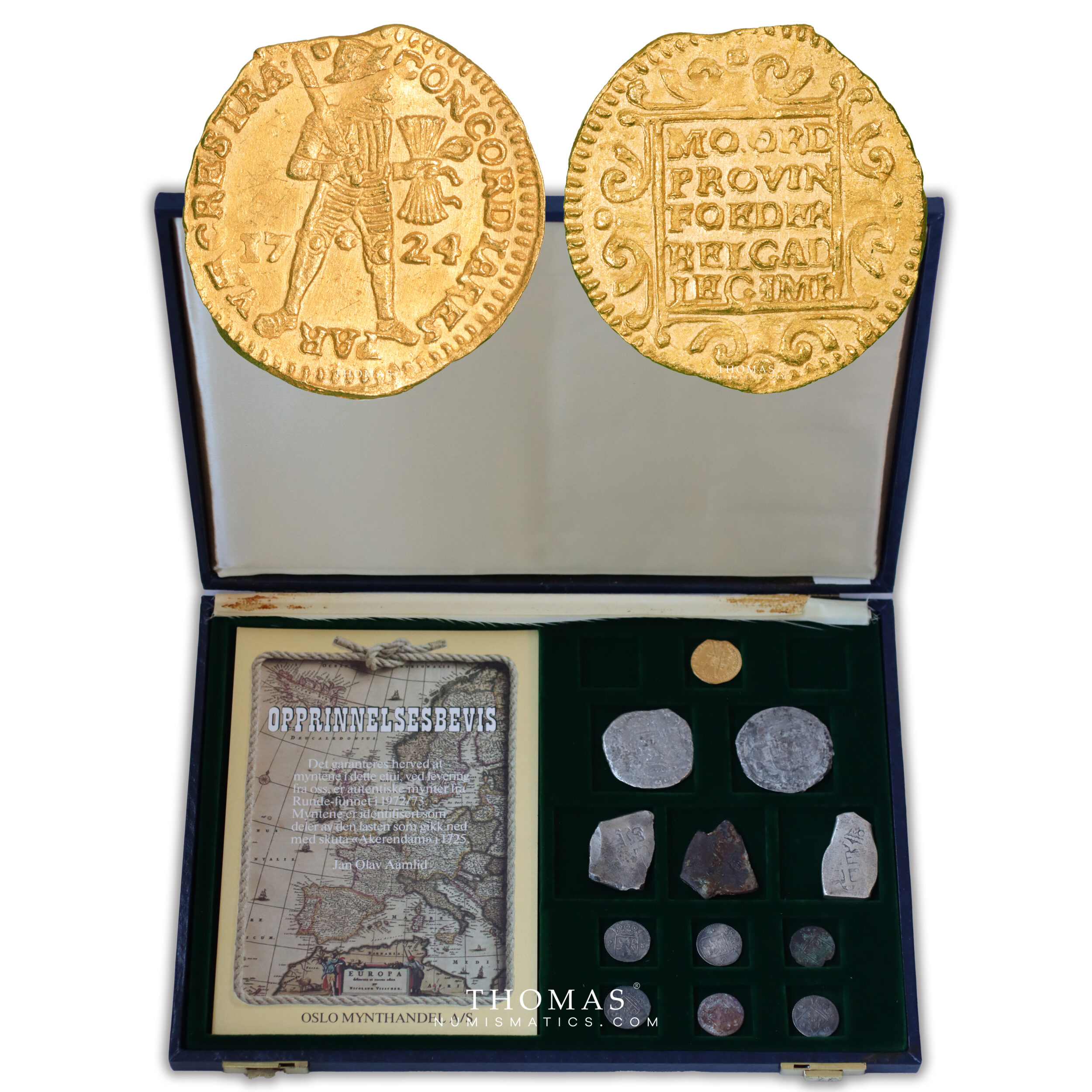 original set collectors – 1 gold ducat 1724 Utrecht – 11 silver coins – shipwreck treasure Akerendam